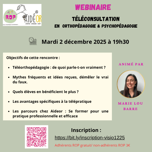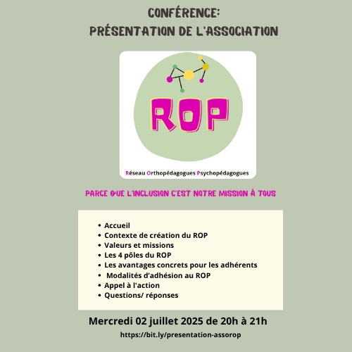 Le ROP (Réseau des Orthopédagogues et Psychopédagogues) est né de l’initiative d’une orthopédagogue et psychopédagogue, ancienne enseignante, animée par la volonté de créer un espace de cohésion, de partage et de reconnaissance autour de ces deux métiers encore trop méconnus.